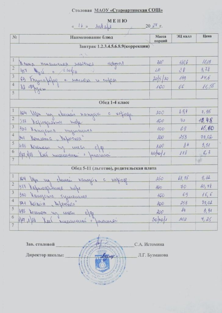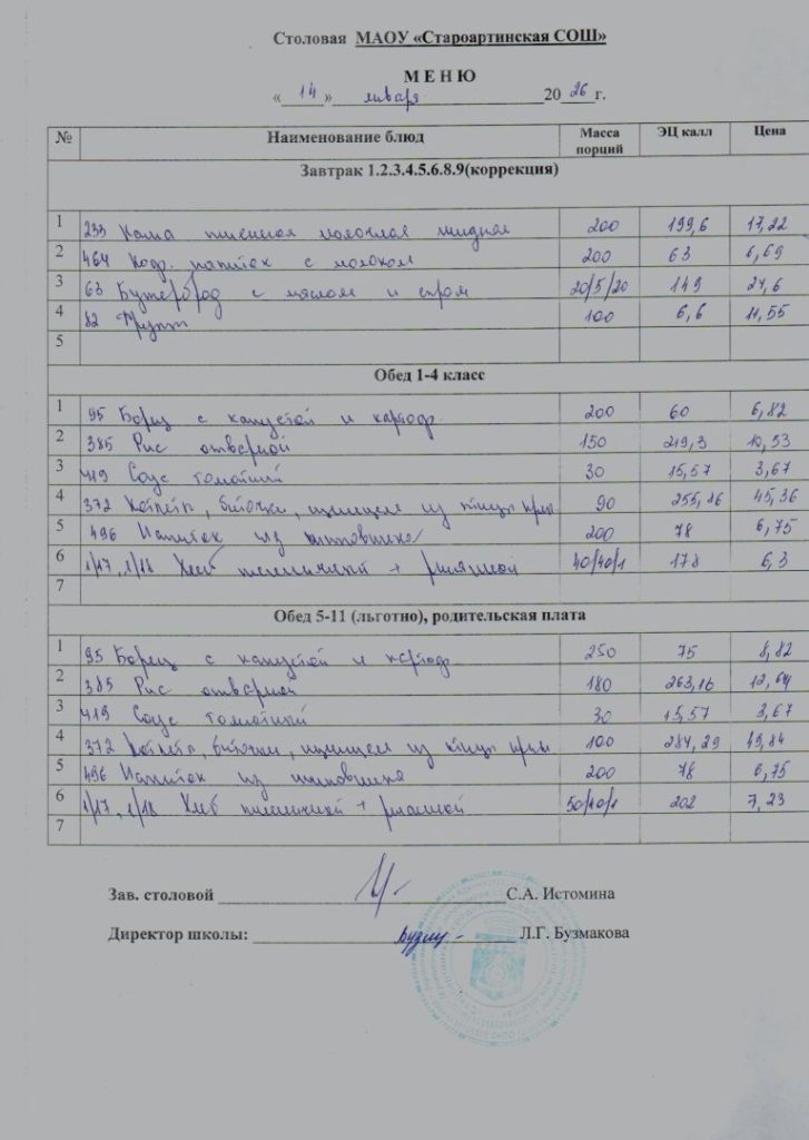 Меню