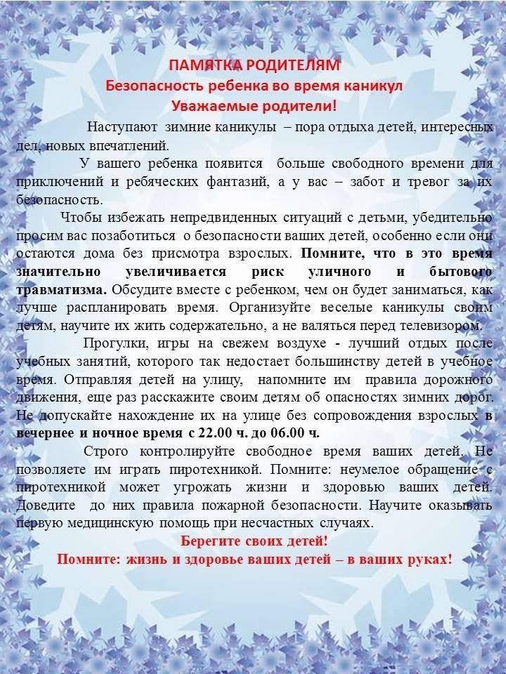 Памятка для обучающихся и их родителей