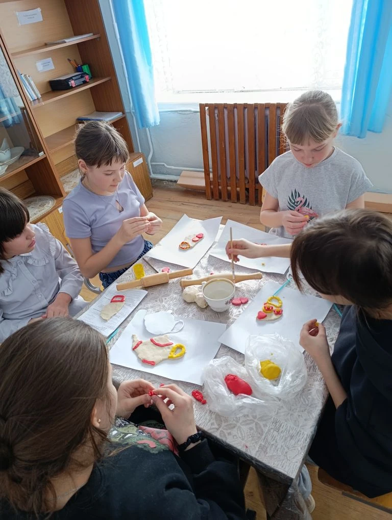 Сегодня на занятии «Мастерская творчества», под руководством учителя технологии Елены Андреевны Сириновой, девочки занимались увлекательным творческим процессом-работали с солёным тестом. Они с интересом создавали декоративные изделия в форме заварочных чайников и чашек. Творческая работа приурочена Масленичной неделей, украшая их яркими элементами из цветного теста. В конце занятия юные мастерицы продемонстрировали свои готовые работы.