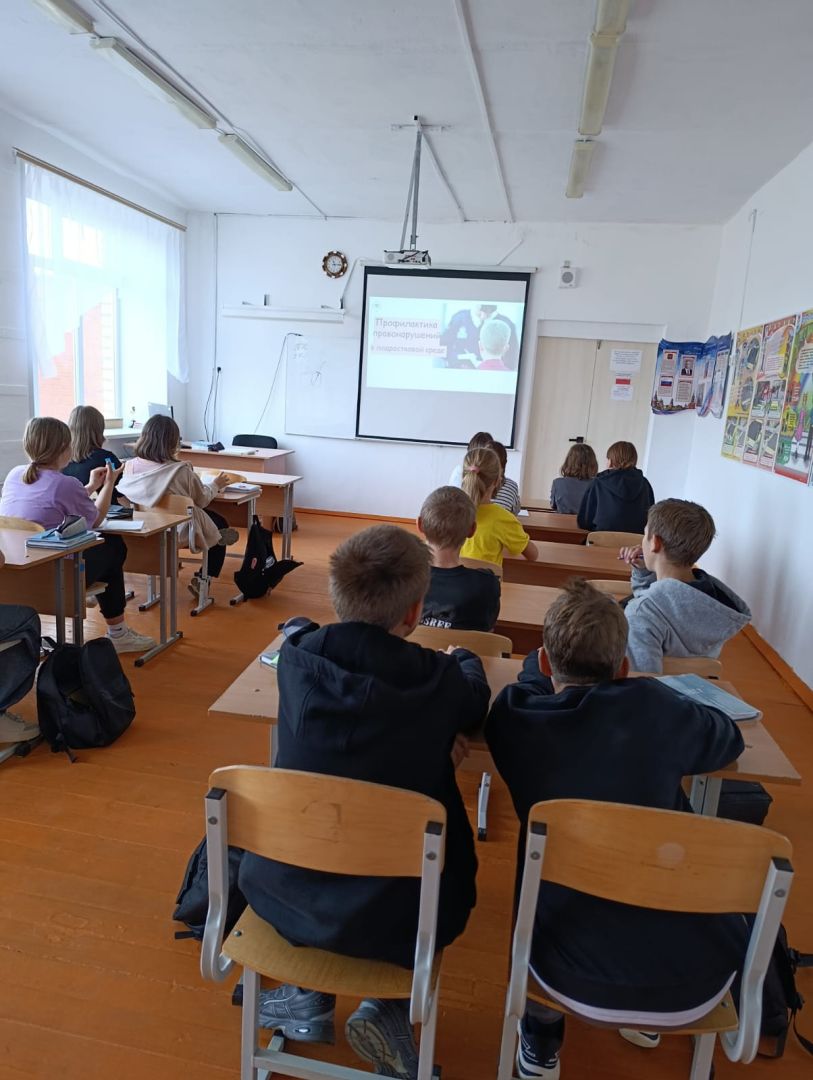 В 6 классе проведена профилактическая беседа «Мы в ответе за свои поступки». Целью: профилактика правонарушений и формирование здорового образа жизни среди учащихся. Были затронуты такие темы как, комендантский час: разъяснение временных ограничений пребывания несовершеннолетних на улице, общественный порядок: правила поведения в общественных местах, преступность и насилие: недопустимость противоправных действий и травли, а так же ЗОЖ: основы здорового образа жизни. В результате учащиеся получили представление о правилах поведения, сформировали понимание ответственности за нарушения, освоили базовые принципы ЗОЖ и обсудили механизмы противодействия травле. В конце мероприятия, детям были розданы информационные листовки о правонарушениях несовершеннолетних.